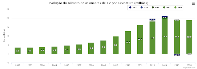 assinantes em 2016, o setor tem encolhido. Perdeu cerca de 700 mil assinantes